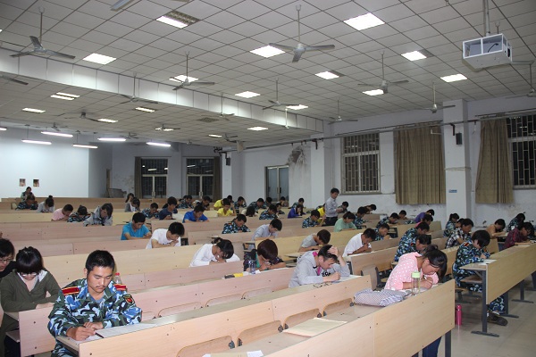 考试现场秩序井然,气氛严肃,每一位同学都自觉遵守考试纪律,聚精会神思考,认真作答,体现了新生们良好的精神风貌。 终于,铃声又响起,考试结束了。新生们放下试卷,带着轻松的微笑,整齐有序地走出考场,看来小小的分级考试难不倒物电学院12级的新生们。交卷后同学们纷纷表示无论成绩如何在今后的学习中一定会认真学习,努力完善自我,提高自己的英语水平。(杨林林)