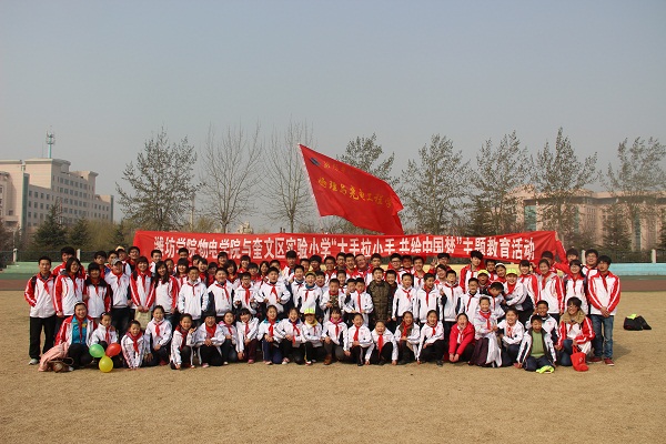 活动持续了三个多小时,在同学们的欢笑声中圆满结束。通过此次“大手牵小手共绘中国梦”活动,不仅丰富了小学生们的课余生活,充实了童年回忆,拓展了视野,而且锻炼了大学生们的社交能力, 活动组织能力和社会实践活动能力。(王晓雪)