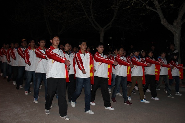 为了保证潍坊学院大学生春季运动会的顺利召开,展现物电学院学生良好健康和积极向上的精神风貌。近日晚7点至9点半,物电学院在樱花西路组织了运动会开幕式方队训练活动。辅导员王国栋老师,学生会副主席徐龙佳,体育部部部长刘晓庆到场并指挥表演方队的训练。此次训练的方队成员由物电学院2012级的64位同学组成。