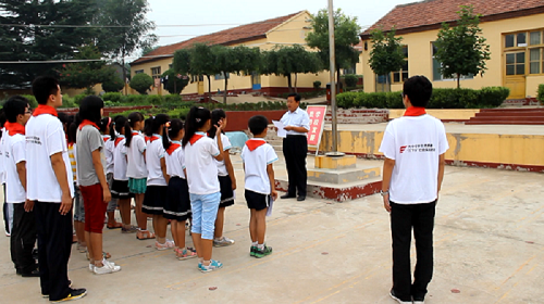为深入学习党的十八大精神,深入开展中国特色社会主义宣传教育,引导茹家庄小学的同学们为实现国家富强、民族复兴、人民幸福的伟大“中国梦”而发奋学习、不懈奋斗,2013年7月22日早晨,物理与光电工程学院支教服务队组织开展了以“中国梦,我的梦”为主题的升旗仪式。茹家庄小学校长赵世坤、支教服务队全体成员以及全体同学参加了此次升国旗仪式。