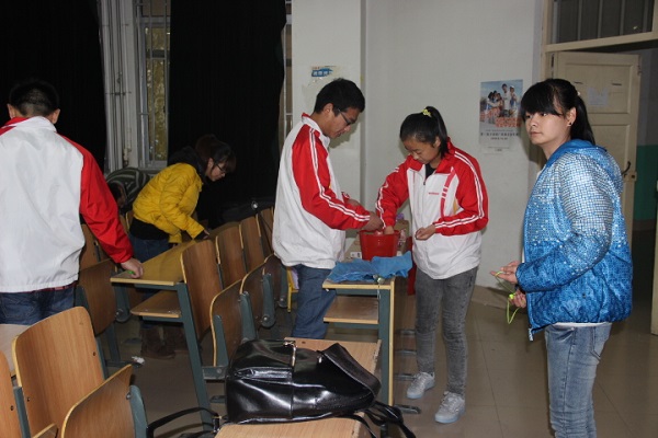 早上八点大家统一在5号楼集合,负责人提前从物业借来维修工具,并与物业达成长期的活动协议,每个月就对学校各教室桌椅进行检修。志愿者服务队队长宋霞将志愿者们分为两队,分别负责6111611272147217四个教室进行检查维修。本次维修2013级的新志愿者们为活动注入了新鲜血液,志愿者在队长们带领下齐心协力,团结合作,检查每一张座椅的螺丝是否有丢失、松动等的现象,并及时进行了维修和处理。大一的干事们第一次参加这种志愿活动,个个精神抖擞,积极投入。在工作中,大家一丝不苟的对桌椅进行检查,分工明确,相互配合,认真维修。在活动过程中,志愿者们彼此交流,整个教室里充满了欢声笑语。一切疲惫随着窗外的细雨化作欢乐,每个人都感到非常充实,满足。大一的同学们也从这第一次活动中感受到了作为志愿者为人服务的成就感。