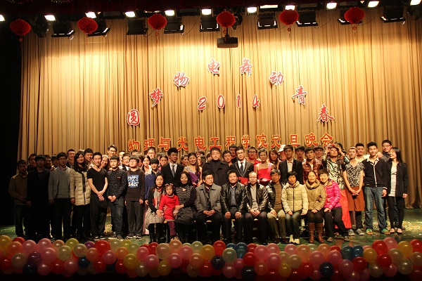 不知不觉,2013年即将过去,新的一年将要到来。为了迎接新一年的到来,由物理与光电工程学院主办,物理与光电工程学院团总支、学生会承办的以“圆梦物电,舞动青春”为主题的物电学院2014年元旦晚会于2013年12月8日晚7:00在图书馆报告厅正式拉开了序幕。物电学院院长逯怀新、党总支副书记仲明礼、副院长黄宝歆、李英德以及全体师生观看了晚会。