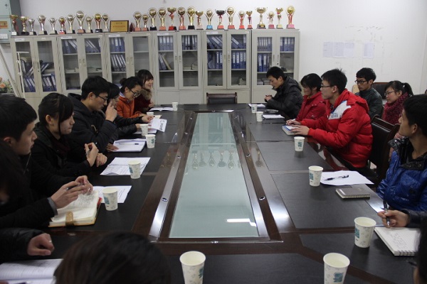 会上,首先物电学院学生会宿管部、学习自律部和女生部做了简单成员和部门工作介绍。接下来,由在自律参与学生量化工作的王帅同学代表自律委作介绍了所在部门工作。随后,自律委依次进行了部门的介绍,双方就部门职能认识问题进行了讨论和交流。同时,主要针对以下几项问题进行了详细的讨论与交流。一是大二早起、晚自习的纪律和出勤量化问题;二是用水、用电、大功率电器等公寓安全问题;三是爱心资助及校外助学岗位。物电学院各部成员就平时量化工作中出现的问题与自律委的成员进行了探讨与交流。在交流过程中针对这些量化工作双方都提出了一些建设性的意见,例如以促进学风创建为主开展各类学术报告、讲座等活动来提高同学们的意识等。