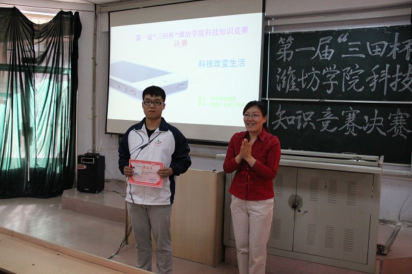 知识碰撞火花,智慧点燃激情,经过初赛的角逐有8个学院进入了第一届“三田杯”科技知识竞答决赛,2014年5月15日下午3点激烈的比赛在5210如约举行,莅临本次比赛的有潍坊学院团委副书记张晓静老师,物电学院党总支副书记仲明礼老师,物电学院团总支副书记张芳芳老师,各队参赛人员和观众参加了此次大赛。