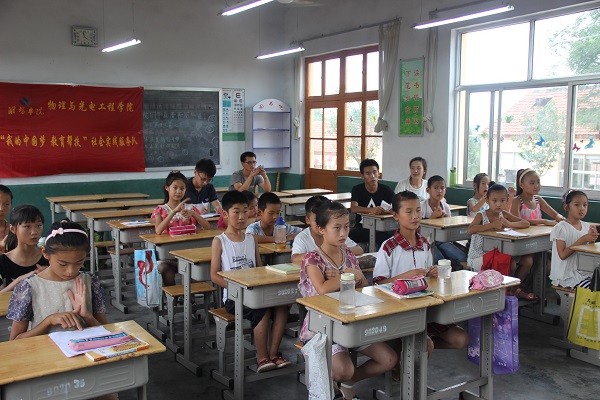 2014年7月17号下午2点,物理与光电工程学院大学生教育帮扶社会实践服务团队的成员们与茹家庄小学的孩子们正式见面了。