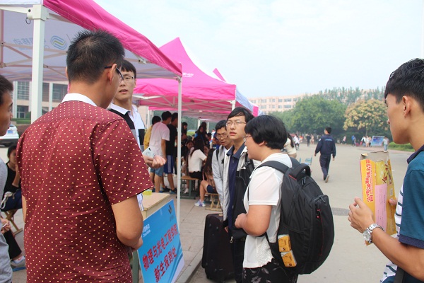 早晨七点,志愿者各就各位,并且也已经有志愿者到火车站,汽车站去接新生。由于9月13日已来报道较多新生,所以相对于前一天,今天的迎新工作就没有如此繁忙。陆陆续续有新生到接待点处询问,学长学姐们也不厌其烦地回答新生家长提出的各种问题。然后由学长学姐们带领他们去报到处报到,学长学姐主动帮忙拎行李,一路谈笑风生。新生也在学长学姐的热情中渐渐露出自信而灿烂的微笑。到达报到处后,新生们需要上交各种材料给老师并领取校园卡后,统一坐着学校迎新的大巴车到弘德书院去安排宿舍。一切都在有序的进行着。新生报到所展现出来的不仅有他们对新事物的好奇,也有对大学生活的憧憬,还有在新生背后的家长们,他们送孩子上学,替孩子拿行李,陪孩子报到,在空闲的时候经常是累的坐在台阶上,有的甚至已经躺在了草坪上。至下午6点,2014年物电学院学院的迎新工作圆满结束。