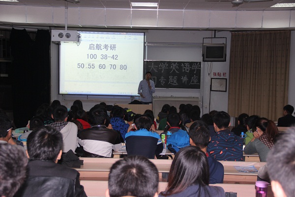 2014年10月27日晚7点,潍坊学院“大学生英语学习专题讲座”在5210教室圆满举办。此次讲座由潍坊学院启航考研英语辅导名师韩苏老师主讲,潍坊学院有意参加考研以及参加英语四级考试的学生聆听了此次讲座。