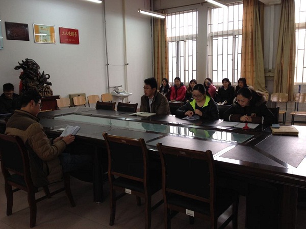 2014年12月9日下午3点, 物理与光电工程学院在党支部办公室5205召开了学生党支部大会。物电学院学生党支部书记张芳芳、辅导员李静老师、黄晓东老师、杨阳老师以及全体学生党员参加了本次会议。大会由学生党支部书记张芳芳老师主持召开。