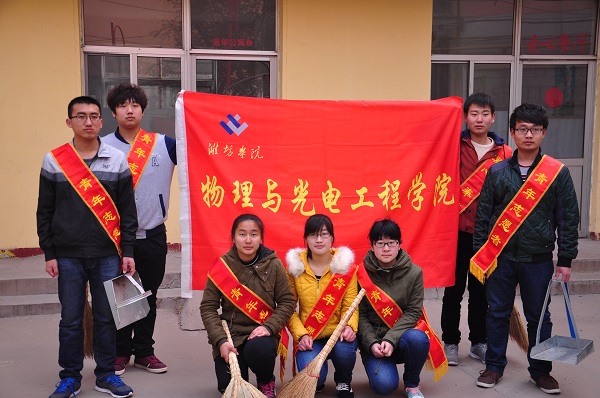 “学习雷锋好榜样,忠于革命忠于党......”这首耳熟能详的歌曲,教育了我们几代人。弘扬为人民服务的雷锋精神和“奉献、友爱、互助、进步”的志愿者精神,是我们大学生志愿者的光荣使命。2015年3月14日早晨八点,潍坊学院物理与光电工程学院量子志愿者服务队的志愿者们就走出校门、走进潍城区南关街道西市场社区,开展了一次学雷锋志愿服务活动。