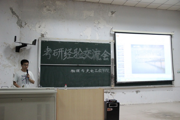 2015年5月15日19:30,物理与光电工程学院在5019教室举行考研交流会,出席本次交流会的老师有:辅导员办公室副主任张芳芳、2012级辅导员韩恺、2014级辅导员韩桂红,以及12级、13级、14级的学生。为大家分享考研经验的是物电学院今年考研中的佼佼者,他们是王进展、张玉峰、刘晓庆、刘浩、冯玉婷、马德营等。