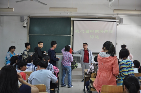 为表彰老师们的教学成果,帮助老师调整和改进教学方案,2015年5月18日下午4点,物理与光电工程学院举办了“我心目中的好老师”投票评选活动。评选活动在7105教室如期举行。参加活动的是物电学院学生会成员和大一的同学们。本次活动还邀请了校学生会代表对活动进行监督。