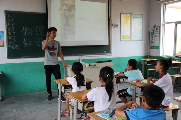 2015年7月18日,潍坊学院物理与光电工程学院“圆梦教育”社会实践服务队到达茹家庄小学的第二天,今天一切步入正轨,志愿者们开始按照计划对孩子们进行课程教学。为孩子们传输正能量,开阔他们的眼界。