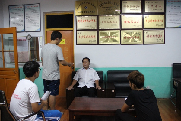 2015年7月24日对潍坊市临朐茹家庄小学校长赵世坤进行寻访,赵校长31岁参加高考考入昌潍师专历史系,在校期间各方面表现优秀并担任班长,是潍院优秀校友。毕业后他考取并担任茹家庄小学校长。志愿者们不解赵校长一家都住在学校里,他说现在教育局管理严格,要确保学校和学生安全,身为校长要对学生负责。来到茹家庄小学,小学的整体特色深深吸引着志愿者们,所以赵校长给志愿者讲述了茹家庄小学的成长经历,2012年对茹家庄小学进行了标准化改造,13年所有教学配套设施全部改进,并且打造田园特色校园,成为五井镇教育的风景线。赵校长非常感激和赞同志愿者们来茹家庄小学支教,能够与农村的孩子们面对面,让孩子们得到大学生的文化熏陶,开阔视野,对孩子的成长有积极的意义。最后,赵校长表达了对母校的想念和寄语,希望潍院增加师资力量,继续加强教学设施的建设,望潍院办学越来越好,培养出一批又一批的优秀人才。