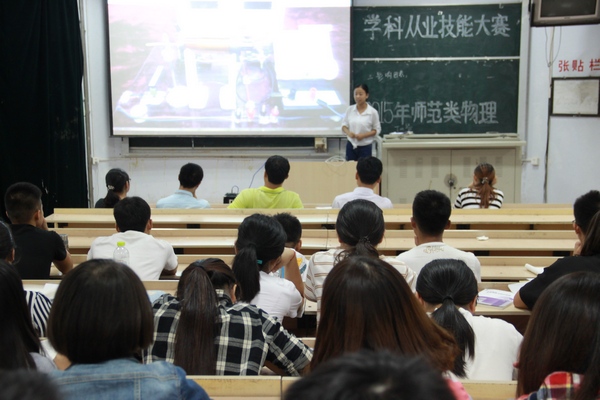 这次比赛的顺利进行,给比赛的同学们一次难得的讲课机会,锻炼了选手们的课堂设计能力和语言表达能力。增加了师生间的交流,让同学们更加理解老师的辛苦和付出。同时也给2014级物理学专业的同学一次学习的机会,大家共同交流、共同进步。相信大家以后都会成为一名优秀的物理老师。