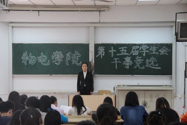 2015年10月15日下午2时,物理与光电工程学院第十五届学生会纳新竞选大会在5109和5210教室隆重举行。参加本次纳新的有物电学院第十五届学生会主席团、部长、副部长和参加此次纳新竞选的2015级新同学们。