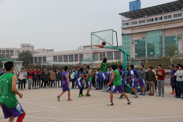 为了丰富大学生的课外娱乐生活,提高同学们的身体素质与文化修养,潍坊学院举办了第十五届校园篮球赛活动。2015年10月21日下午4点,物电学院迎来了首场比赛,在体育馆东边篮球场对战法学院。物电学院辅导员李静和物电学院啦啦队成员积极关注本次比赛。
