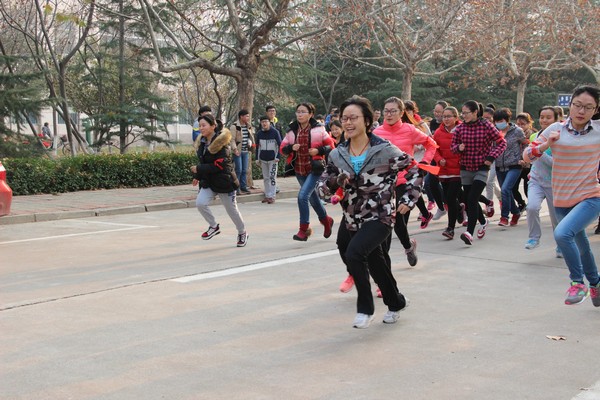 下午两点,所有参赛选手准时来到五号楼明正楼前,首先由物电学院学生会体育部部长吕高奇宣布比赛规则与比赛的注意事项,强调了比赛是以友谊第一竞赛第二的原则,并且提醒大家比赛重在参与,不提倡为了名次而伤害身体的行为。然后,体育部将所有的参赛人员分成两组,女生一组,男生一组。下午两点半,女生组率先进行了比赛。只听一声哨响,女生组的女生们如离弦的箭般冲出起跑线,她们个个都充满了活力,真是巾帼不让须眉啊。随着女生组比赛的结束,男生组也开始了比赛,男生比女生的体力更好一些,路程也是女生组的两倍,但他们没有丝毫畏惧、勇往直前,不愧是物电的学子们。在观众的欢呼声中比赛精彩顺利地进行着。最后,在5210教室举行了隆重的颁奖仪式,由张芳芳老师、李静老师为获奖人员颁发奖品,并对此次越野赛给予了高度的评价与表扬。