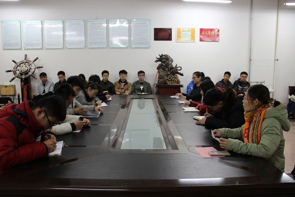 会议开始,张芳芳老师指出此次会议是本学期最后一次会议,全体成员要高度重视,为2015年的工作划上圆满的句号。会议内容分为三项:第一项,张老师发表对新一届学生会这一学期来学生干部工作的评价及意见。通过组织各种活动,新一届学生会学生干部做事态度、认真程度颇为满意,不过对于一些细节、个别事例的处理方面还有待提高。对此张老师举了几年前发生在校园的例子,引起了同学们的共鸣。第二项,主席团成员及各部长分析总结各自的工作情况。主席团及各部代表发言,大家从不同的工作角度分析了新一届学生会成立后的各项工作,从各自组建团体到融入成为一个大家庭,一路走来,各部门都积极完美配合,大家共同努力,各部门之间相互学习、和谐共处。第三项,学生会主席阮世豪对学生会工作进行总结并提出下学期的工作规划。他指出学生干部要起到模范带头作用,做到工作与学习两不误,在期末考试的关头,一定要合理安排复习计划,尽自己的努力取得理想的成绩。最后张老师鼓励大家要继续努力,在新的一年里继续保持,将工作做得更好。