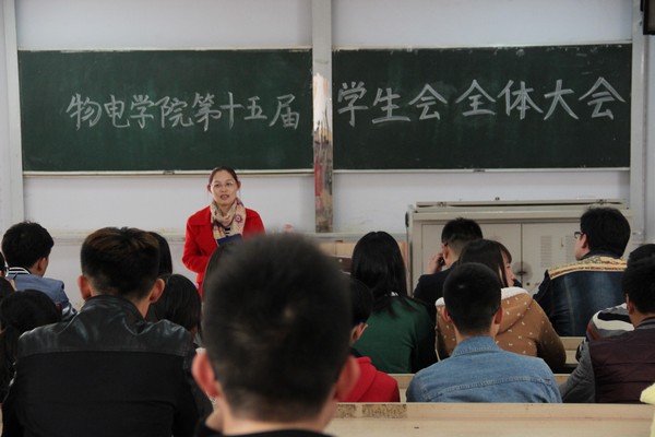 为了进一步加强新学期学风建设,让学生会干部起到模范带头作用,2016年3月3日下午3点,物理与光电工程学院学生会全体会议在5210教室召开。主持本次会议的是物电学院团总支副书记张芳芳,物电学院第十五届学生会全体成员都参加了此次会议。