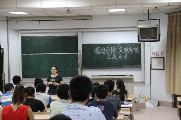 2016年6月10日晚上7:30,物理与光电工程学院2016届毕业生“感恩母校,文明离校”主题班会在五号楼5210教室组织召开。班会由物电学院2012级辅导员李静老师和韩锴老师主持,2016届全体毕业生参加了本次班会。