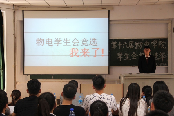 2016年9月22日,物理与光电工程学院第十六届学生会部长级换届竞选在5210教室隆重举行。评委由物电学院党总支副书记贺志波、辅导员办公室主任张芳芳、辅导员李静以及第十六届学生会主席团组成。