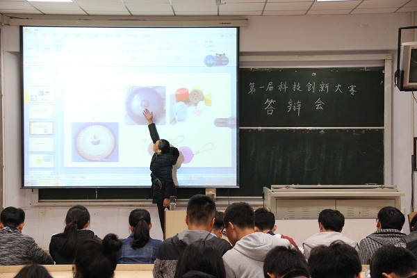 在开场白中,科创部部长杨筱提到:“我们将以最严格的态度最专业的角度来考问你们,所以你们要认真对待,以保证在以后的更高水平的科创大赛上你们能正常发挥。”参加比赛的成员们一个个都严阵以待,精神抖擞,详细细致的讲解自己的启发、原理、创新作品。触及到的领域方方面面,大大小小皆有,但均是来源于生活,感于生活。像王绍畅同学的四推式黑板,一个小小的构思创新为的是解决单纯的上下式左右式黑板在使用投影仪时被遮挡的问题;像仝令清同学对普通物理实验天平的改造为的是减小实验误差;又像汲泽同学的喷水式拖把集吸尘拖地于一体等等。每当选手发言完毕,各位评委会分别就原理、创新点、实用性及发展前景等方面进行提问。在选手们所存在的问题上,评委分别给出了指导性意见,并给予鼓励。在辩论会结束之后,选手在接受采访时表示:“这项比赛让我认识到要敢于设想,勇于实验,创新来源于生活,实现在我们手中。”(董玉婷 高建磊)