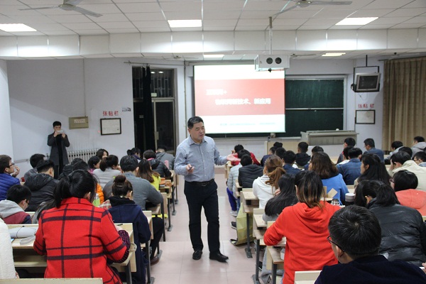 董教授以提问的方式引入电子商务主题,谈到“互联网+”的社会意义:互联网改革了社会发展形态、创造了新形式。当今时代主要有三大形态,分别包括互联网+、人文时代、大数据。其中,“互联网+”是信息传播的工具,为人们获取信息提供了渠道,是社会文化的基础设施,是科技创新的要素。同时,互联网与社会生活息息相关,推动了技术创新,使新兴产业不断发展壮大,产业与技术的联系更加紧密。除此之外,董教授提到“人文时代”,人文时代标志着信息传播的高速发展,在该时代下造就了人人发声、人人创新、大众创新。人文时代下带来了巨大机遇,为创新创业提供了信息资源。最后,董教授随机提问部分学生:“你们现在看手机,主要关注什么?”今日头条、QQ、微信、百度新闻等等,同学们的回答各有所异,董教授就同学们的回答再次强调互联网与现代人生活的密切联系,同时提出网络的弊处,警示同学们要学会如何趋利避害,以此作为结束语。