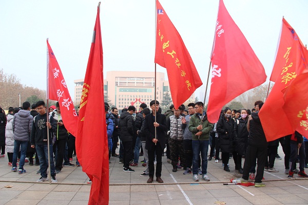 为纪念12.9运动,不忘国耻、铭记历史、增强交流、加强凝聚、增强学生的体质与工作上奋勇拼搏的精神,2016年12月8日下午1点,潍坊学院团委主办以“勿忘国耻,敬青年先烈爱国热血;铭记今日,展激扬潍院学子强健体魄”为主题的拔河比赛,潍坊学院各二级学院、弘德书院共22支队伍于行政楼后广场集合,参加比赛。物理与光电工程学院代表队也积极参加了此次比赛。