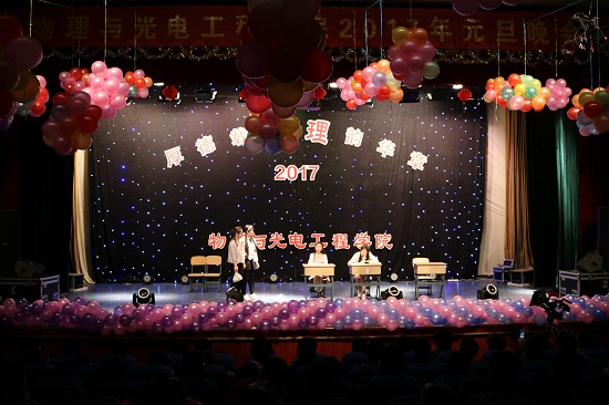 此次元旦晚会在老师和同学的共同努力下取得圆满成功,充分体现了物电学院学子青春昂扬、奋发拼搏、憧憬未来的积极精神风貌。走出报告厅,抬头便是在黑夜里熠熠闪耀的星光,今夜的物电,也是黑夜里最闪耀的一颗星。长夜漫漫,物电人携手共进、奋勇向前。2016,再见。2017,你好。(彭琨然 高建磊)
