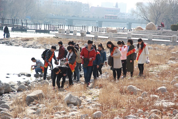 志愿者们衣装整齐,斜挎志愿者标志,手提垃圾袋,脸颊上充满青春的色彩,于下午一点沿着白浪河畔公园开始了这次捡垃圾的活动。