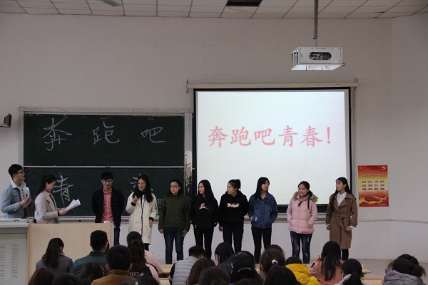 为了培养学生灵敏的时代嗅觉和个性化的创造能力,尽显潍坊学院学子的青春风采,增强同学们迈向成功的信心。2017年3月12日下午2点,物理与光电工程学院在5109教室举行了“奔跑吧!青春”活动。出席本次活动的有物电学院的副主席孙正林、黄振滢、吕浩、外国语学院副主席李彤等,以及物电学院和外国语学院的部分学生会成员。