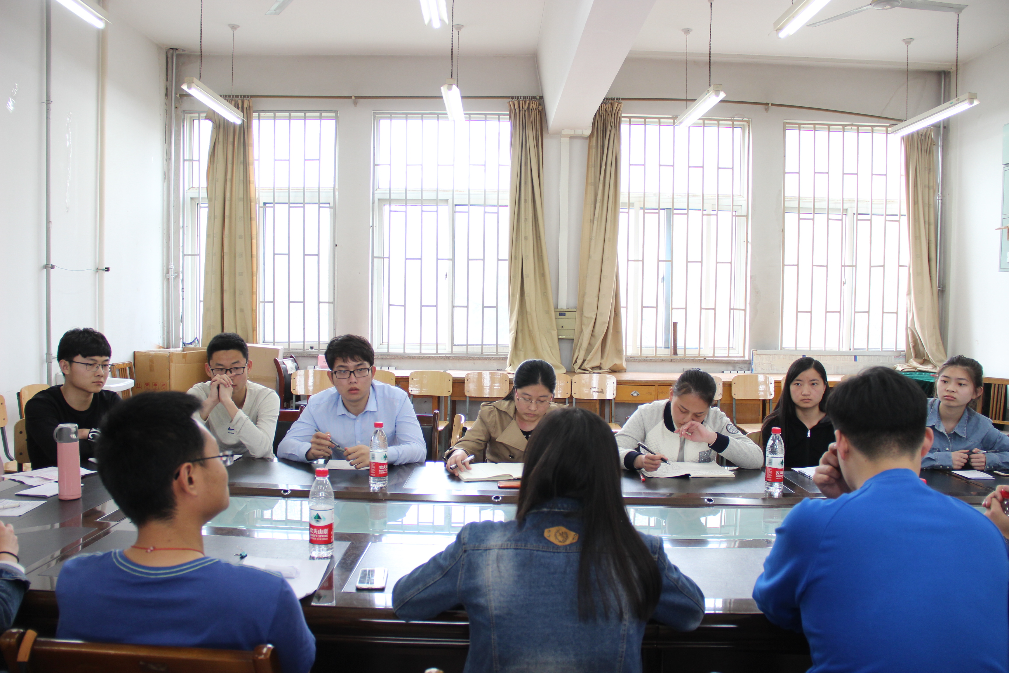 2017年4月15日骄阳似火, 13、14级物理学的同学准时到达5205会议室。座谈会上,王振国书记首先通报了13级物理学考研情况:10人过线,8人录取。阮世豪带头开始讲述自己在考研方面的经验。