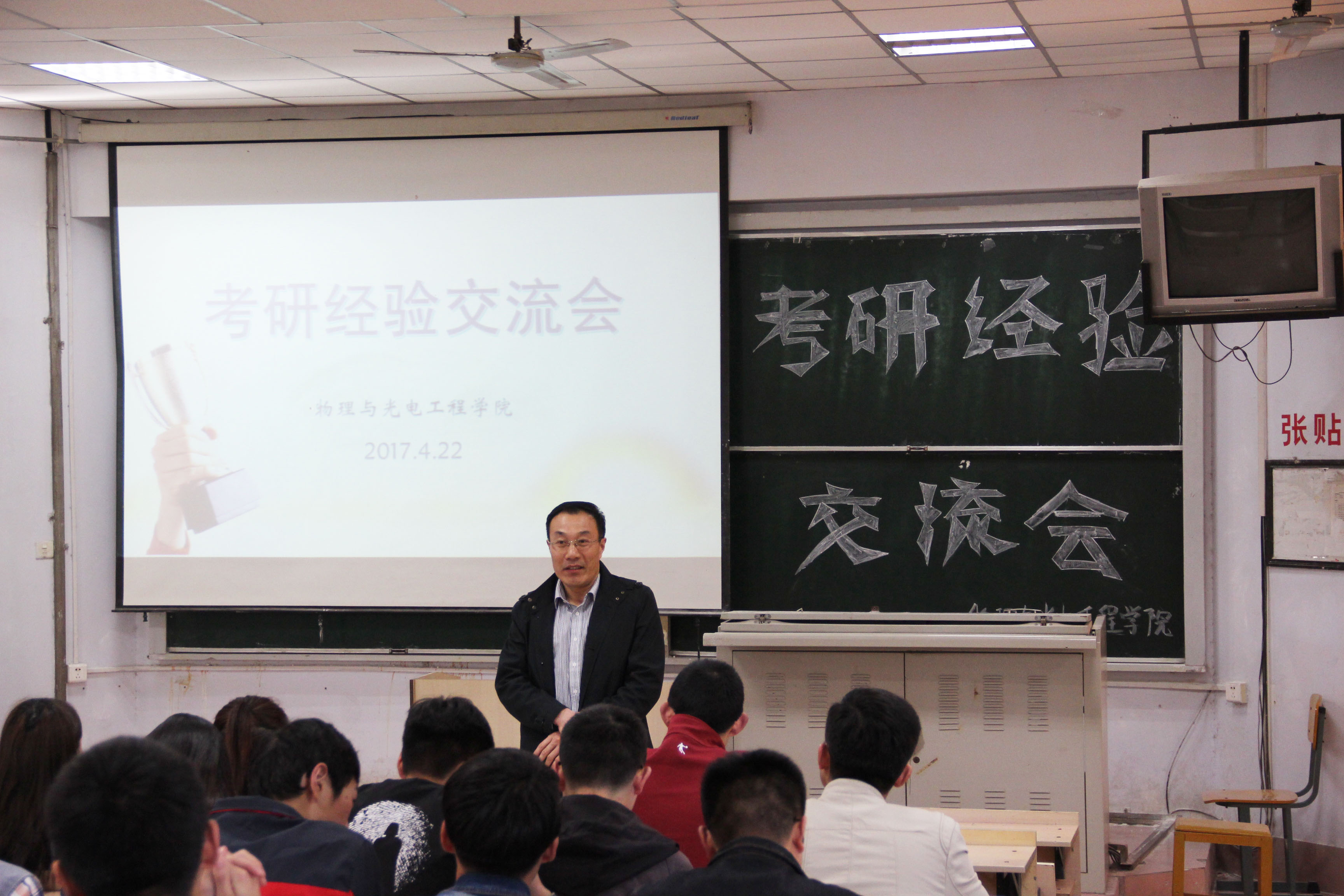 在2017年的考研工作中,物理与光电工程学院在初试过线率、复试录取率等方面都取得了辉煌的成绩。为了更好地带动14级同学的考研热情,2017年4月22日下午14时30分,物电学院党总支副书记贺志波、团总支副书记王振国在明正楼5210室组织召开考研经验交流会,助力14级同学在新一年的考研工作中能够乘风破浪,再创佳绩!