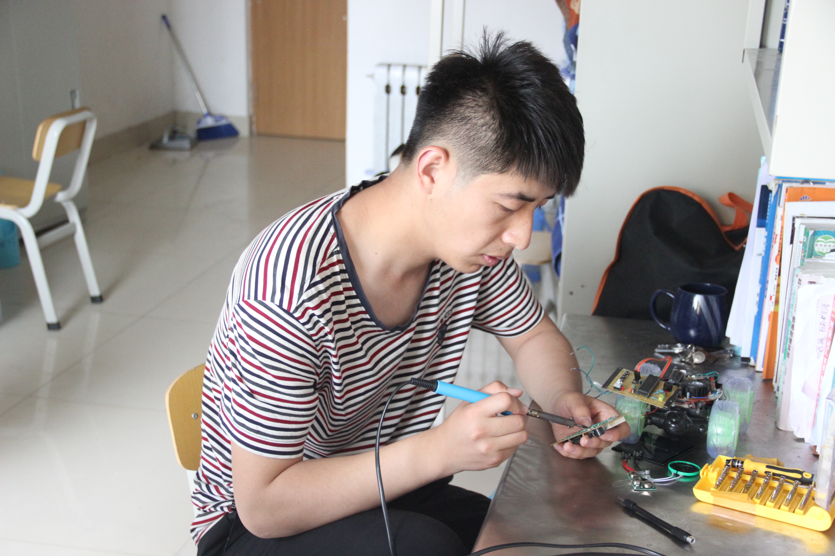 对于科创类比赛,物电学院学子们更是积极准备、踊跃参加。无论是潍坊学院第六届大学生电子设计大赛,还是“展科学真知,创年华风采”大学生科技创新成果展,总能够见到物电学院学子的身影。科创的道路总不是那么的一帆风顺,充满坎坷和困难,会有一个接一个的阻碍接踵而至,可是这并不能击倒同学们,同学们通过咨询老师、网上查询等方式,勇于克服困难,敢于向前。比赛过程中更离不开的是同学们的努力和分组合作,他们化身为一个个“爱迪生”,在宿舍内、实验室内、自修室内,始终不忘自己的科创作品,俯身焊接、维护电路、改善细节,全身心的投入其中,只为心中的那一份坚持。