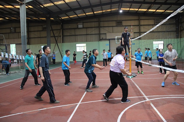 为了丰富教职工们的业余生活,增强教师们锻炼身体的意识。2017年5月24日17时50分,在潍坊学院风雨篮球馆内一号场地属于教工们的排球赛正如火如荼地进行着。代表物理与光电工程学院出战的教工排球队以党总支书记仲明礼为领队,院长李英德为教练,党总支副书记贺志波以及团总支副书记王振国等10名教师为队员。