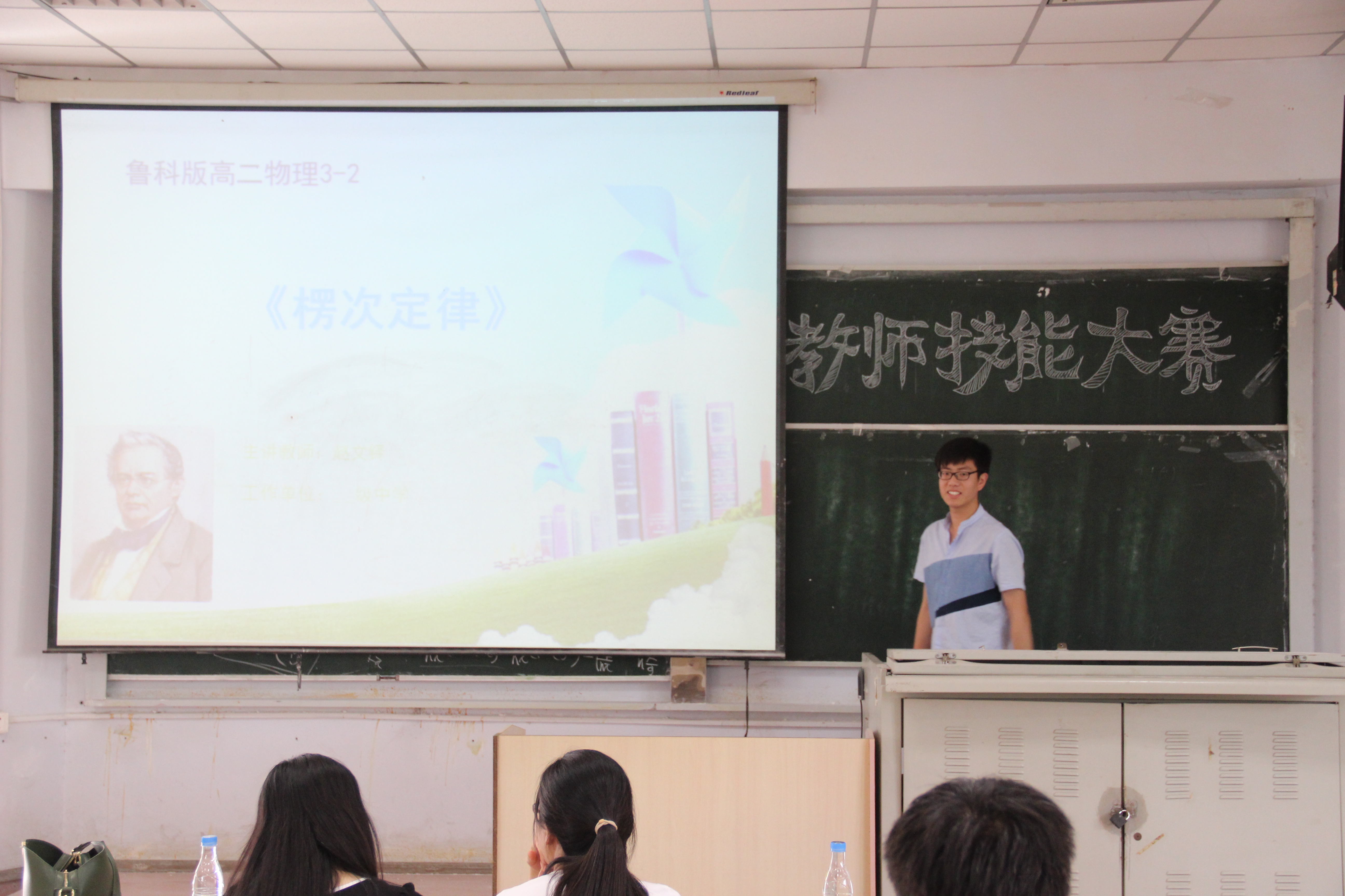 为加强学生教学技能训练,提高学生的教学水平。物理与光电工程学院于2017年6月15日下午2:30,在明正楼5210教室举办教学技能大赛。唐艳艳和孙海竹老师担任本次比赛的评委。
