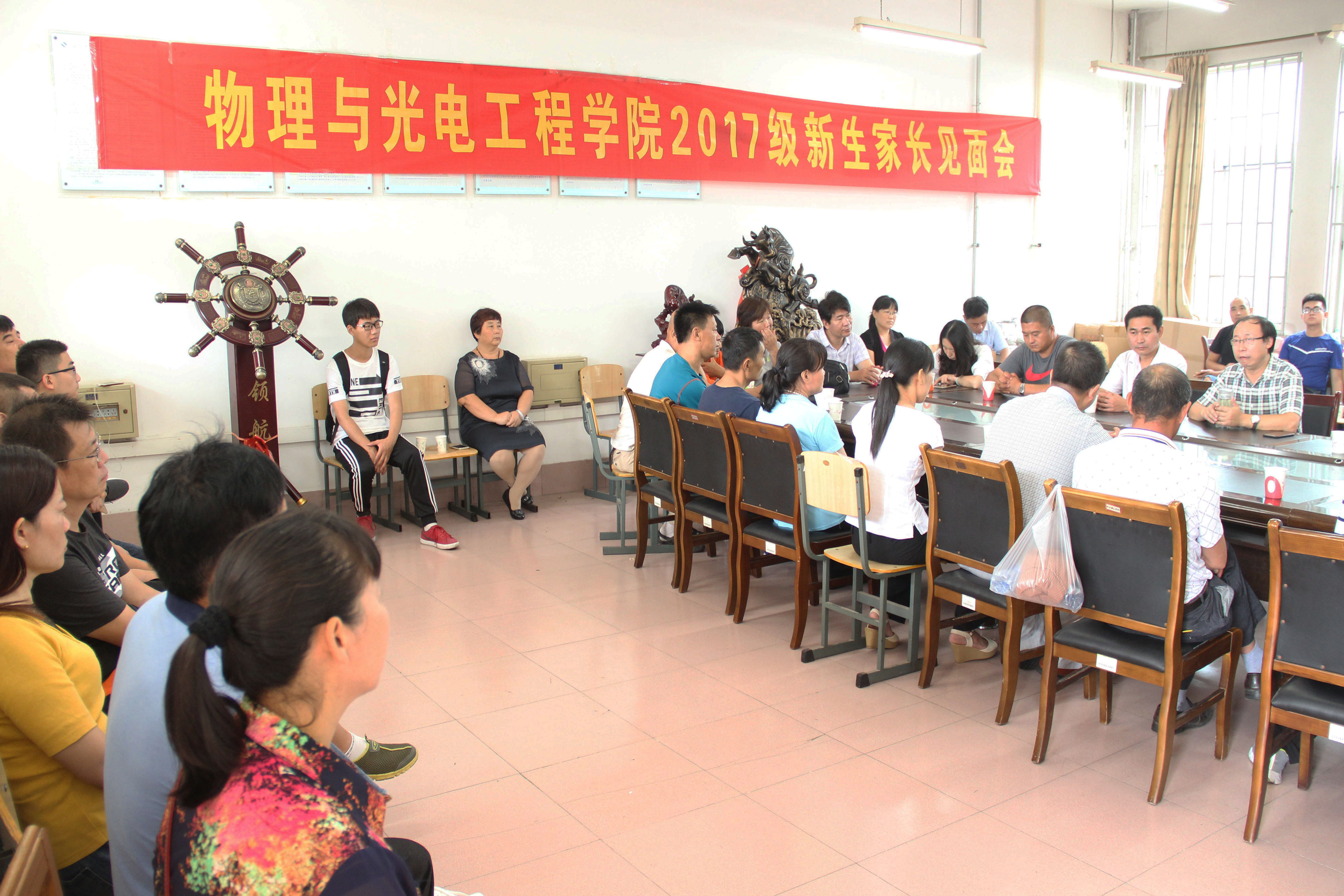 为了更好的引导2017级学生适应大学生活,促进家校联系,共同努力促进每一个学生健康成长成才,2017年9月9日,物理与光电工程学院在明正楼5205室组织召开“物理与光电工程学院2017级新生家长见面会”,物电学院院长李英德,党总支副书记贺志波,学生工作办公室主任、17级新生辅导员张芳芳出席了此次会议。