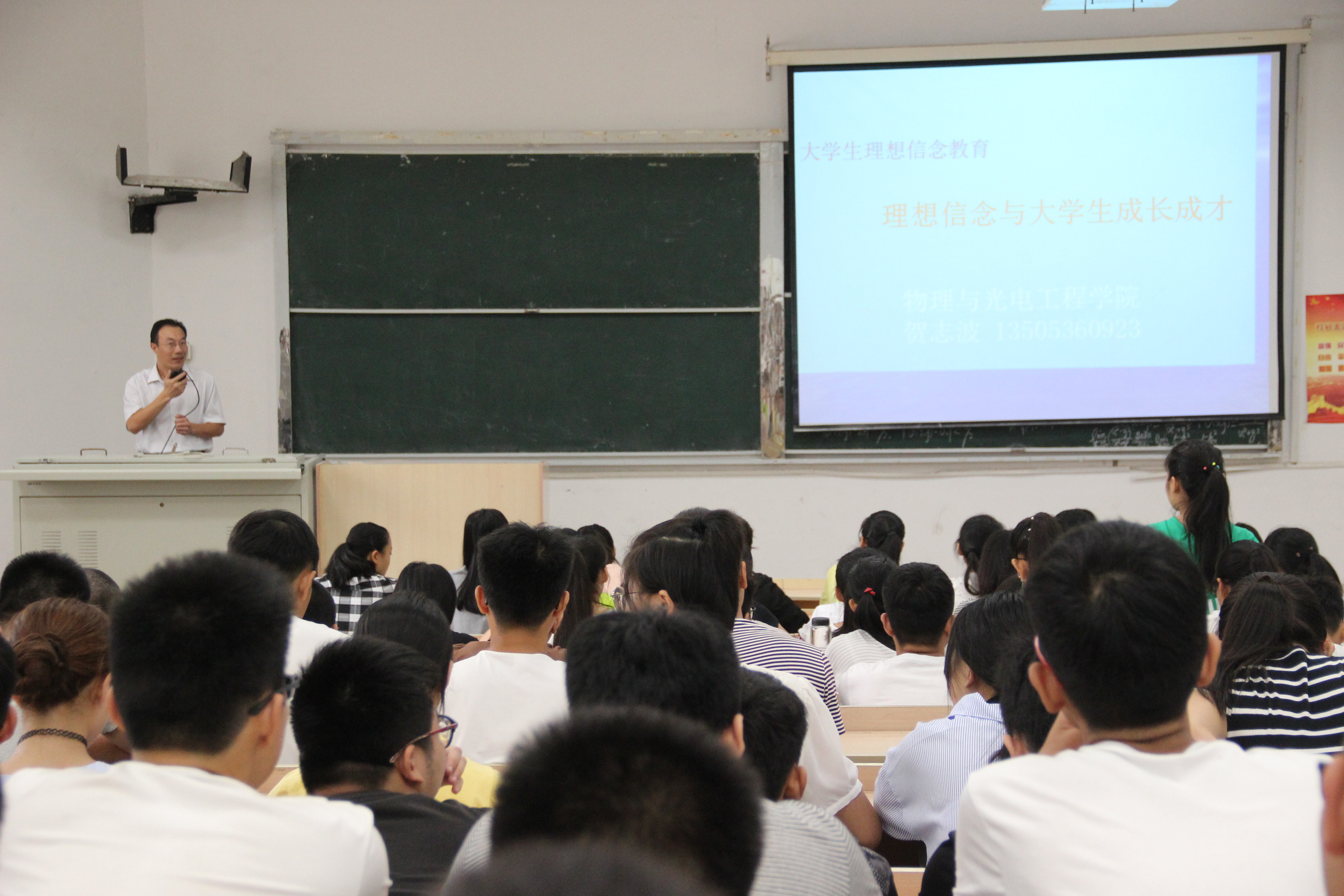 2017年9月10日上午九时,物理与光电工程学院于五号楼明正楼5109教室开展2017级新生入学教育专题讲座,由物电学院党总支副书记贺志波主讲。本次讲座主要针对大一新生展开,目的在于让2017级新生接受大学文化的熏陶,更好的规划自己四年的大学生涯,提高自身综合能力。