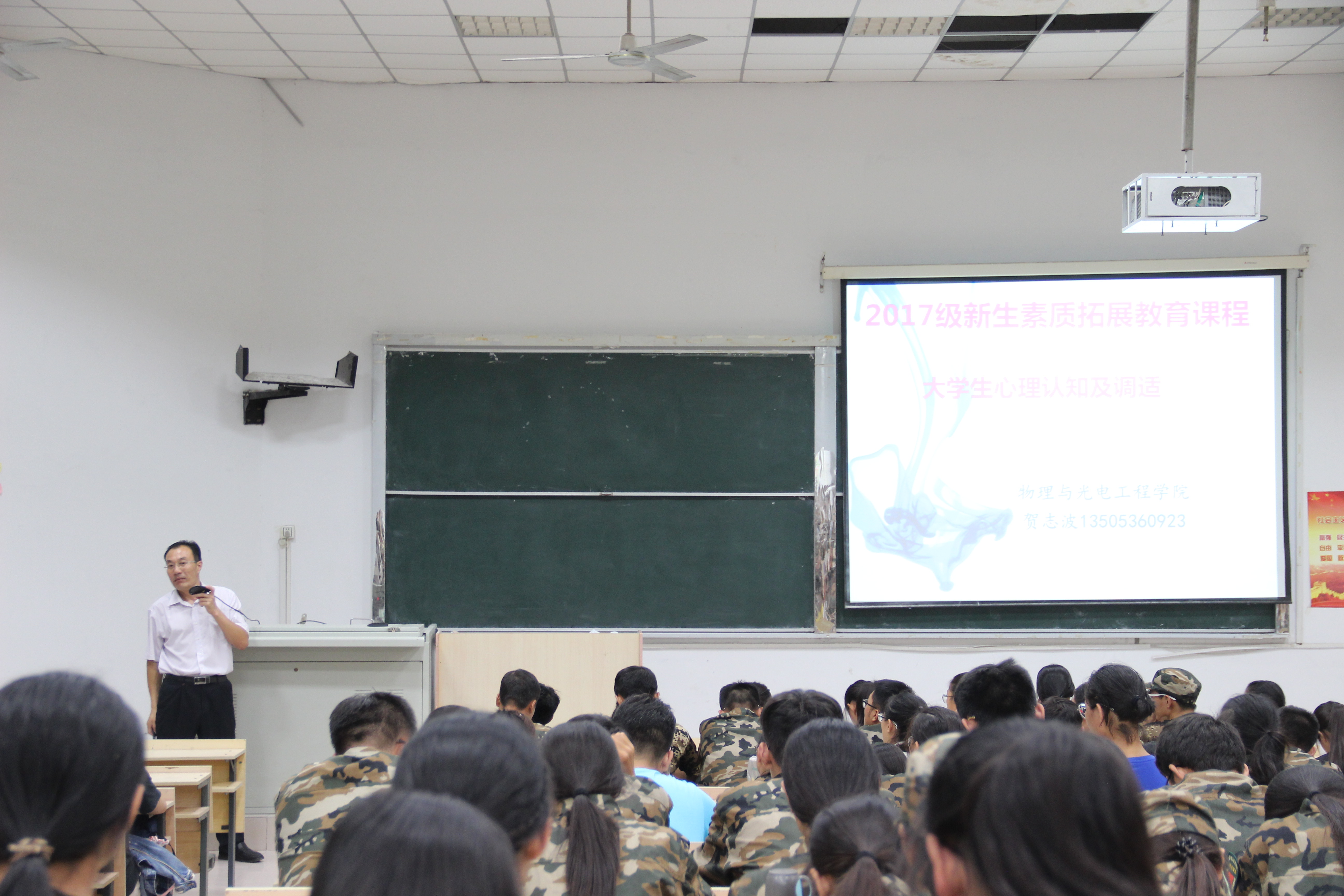 为了使2017级新生更好的了解大学生活,对大学生活有深刻的理解,确立正确的人生目标,缓解新生对新生活的陌生与恐惧,解答新生的困惑,物理与光电工程学院于2017年9月22日晚上7时整,在明正楼5109室召开2017级新生素质拓展教育讲座,物电学院党总支副书记贺志波出席并担任主讲人,为新生讲解“大学生心理认知及调适”相关问题,2017级全体新生参加了此次讲座。