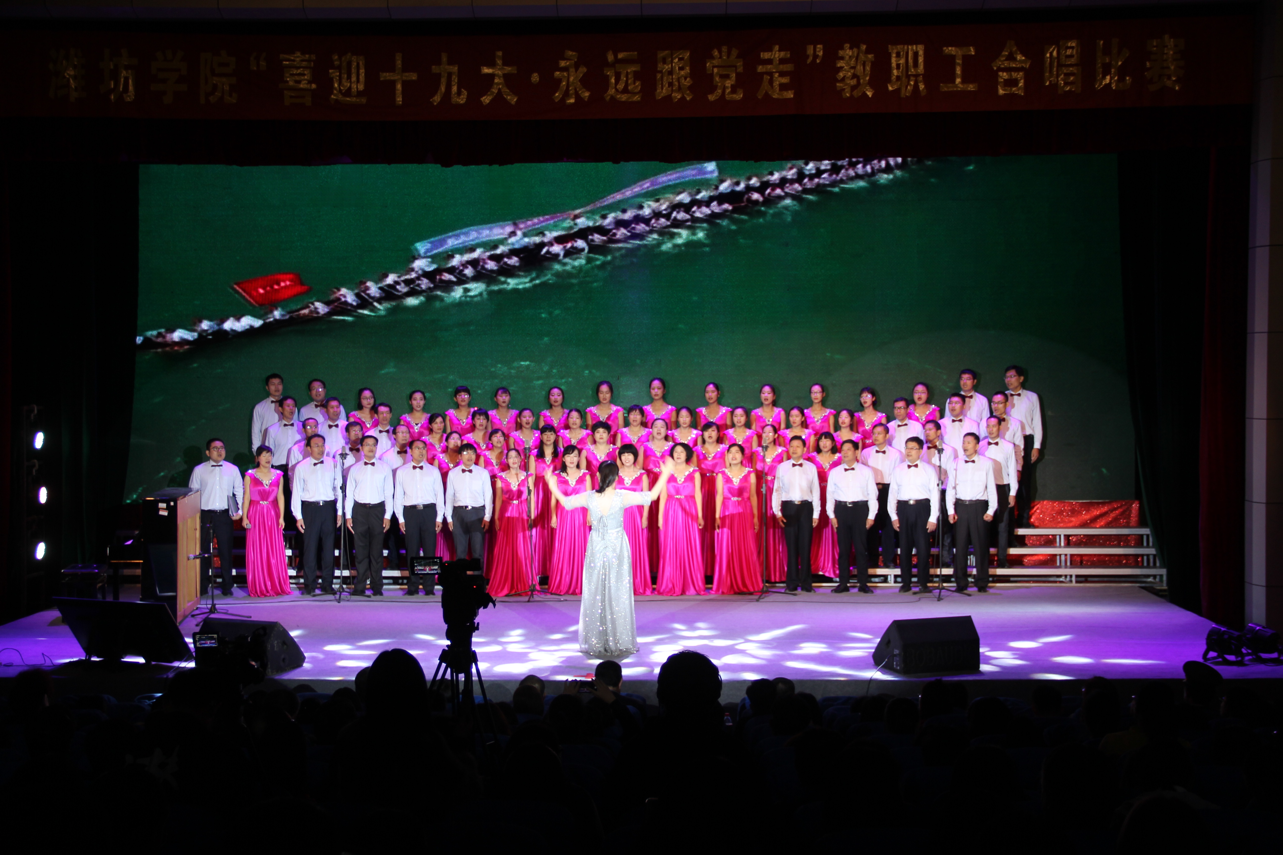 2017年10月12日,物理与光电工程学院参加了在图书馆报告厅举办的由中共潍坊学院委员会主办,校宣传部、工会承办的“喜迎十九大,永远跟党走——潍坊学院教职工合唱比赛”。