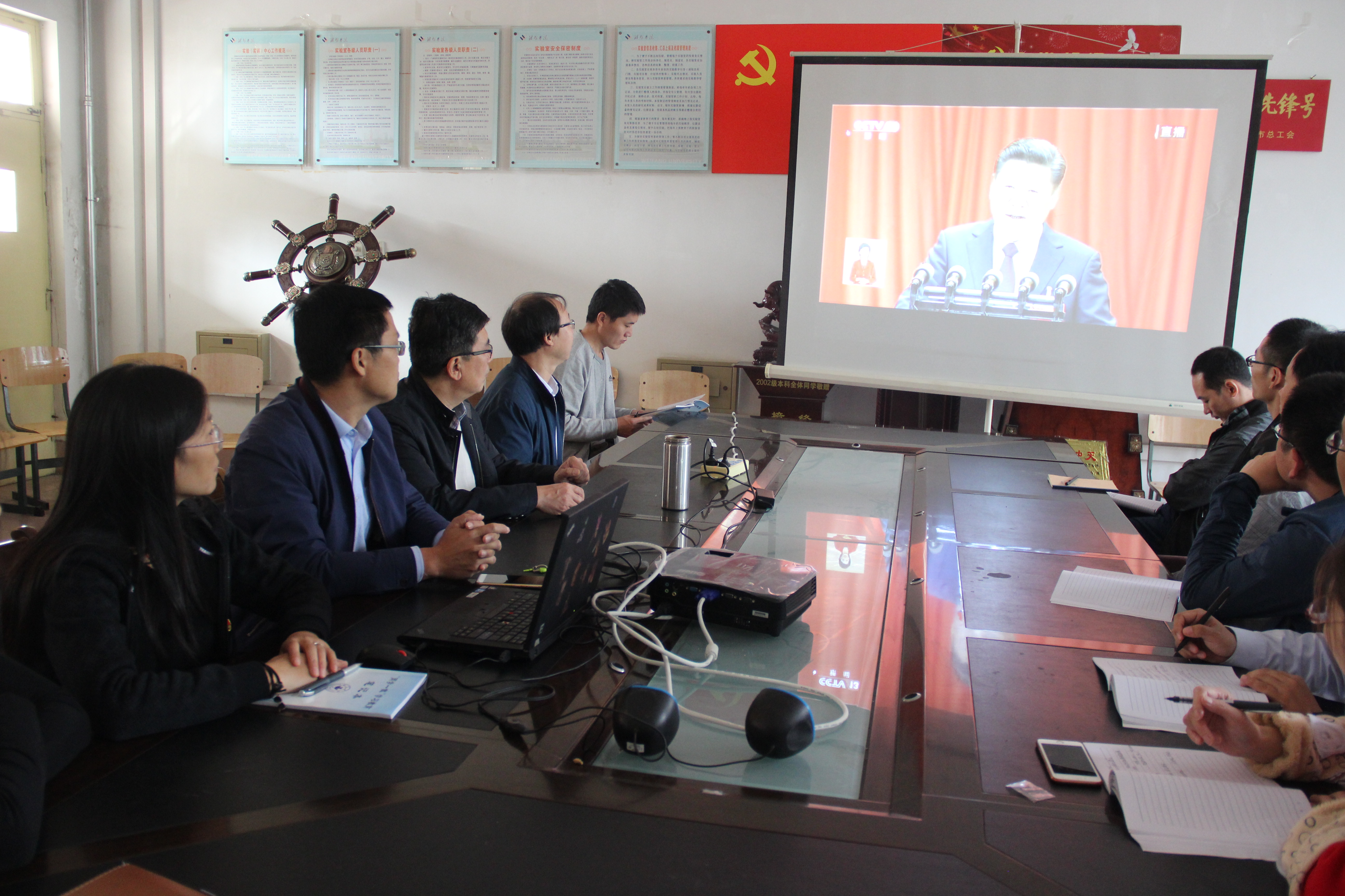 2017年10月18日上午9点,举世瞩目的中国共产党第十九次全国代表大会在人民大会堂隆重召开。物理与光电工程学院党总支积极部署,组织全体院领导、中层干部和没有课的教师,在5205会议室集中收看党的十九大开幕会。