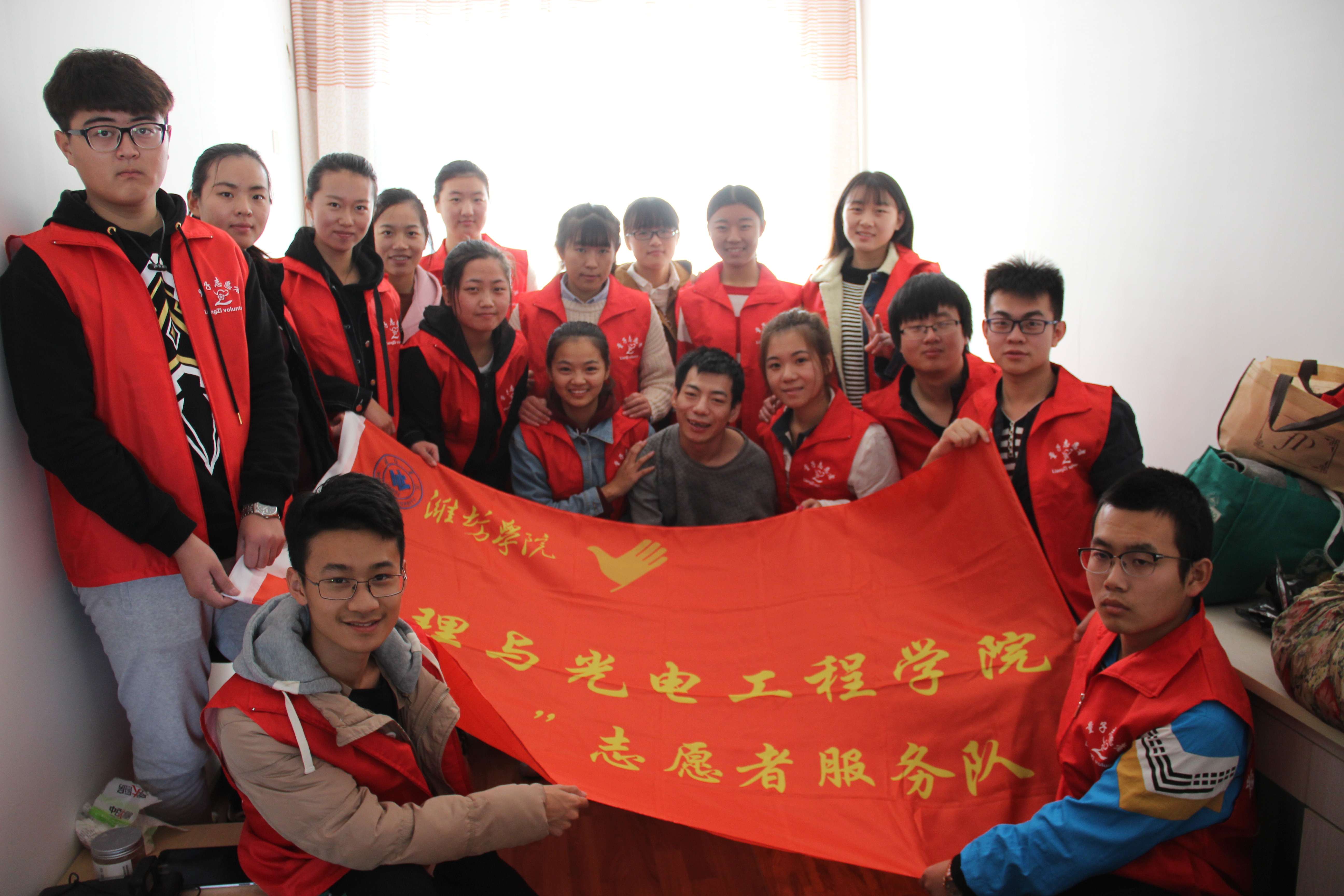 11月12日,物理与光电工程学院“量子”志愿者服务队在队长田美凤的带领下,来到北海花园周连收大哥家,结合学院“太阳花”大型助残行动开展志愿服务活动。