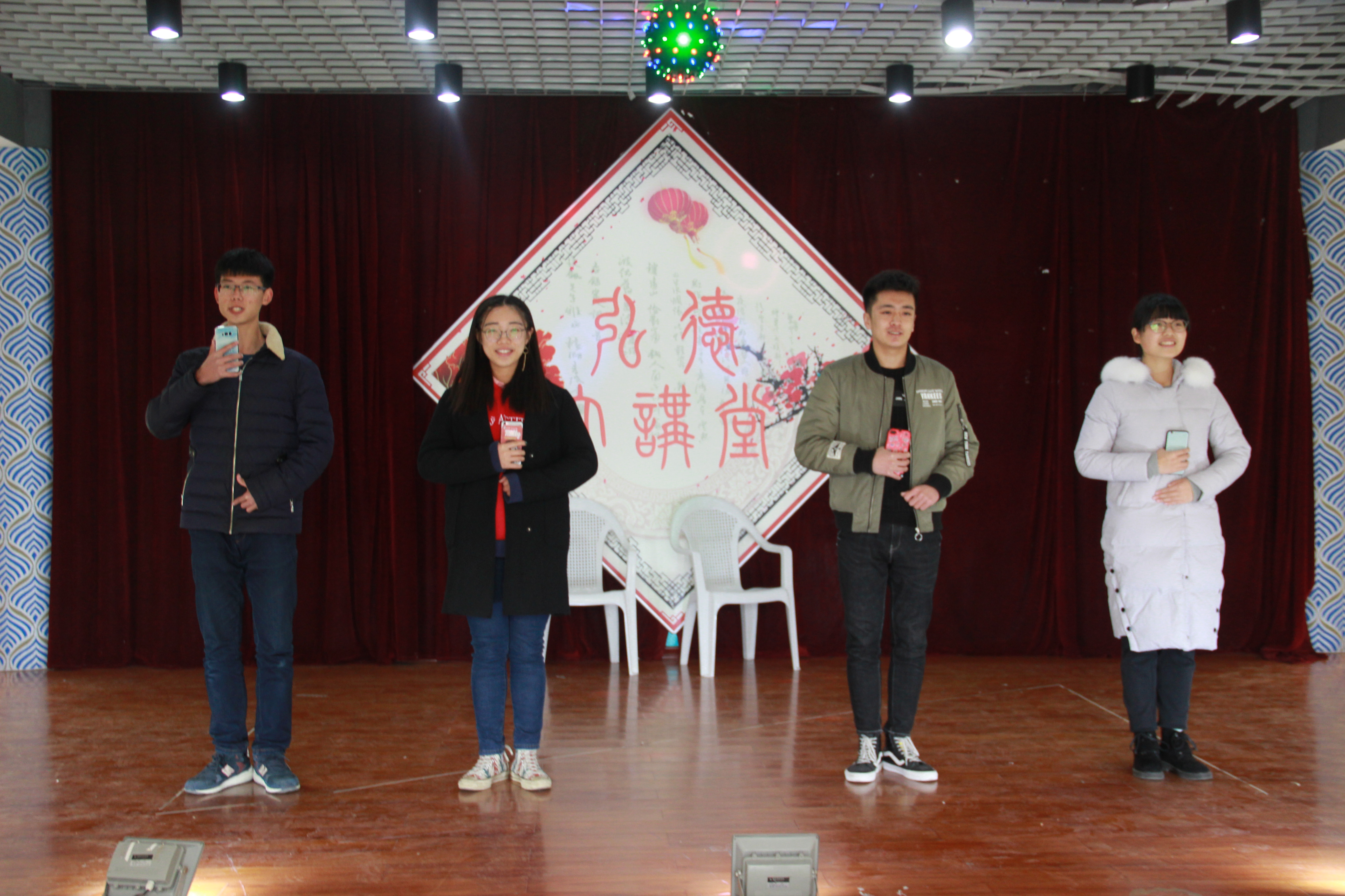 一开场动感的舞蹈活跃了现场的气氛,明快的音乐曲调与激情四射的舞步的演绎夺人眼球。四位主持人的报幕彬彬有礼,慷锵有力地道出了节目顺序。在四位主持人激情洋溢的开场白后,迎来了以教育、反腐为主题的小品。小品表演了老师与大学生的课堂与生活互动,诠释了大学生对保送考研名额的积极争取。以爱国,和平为主题的话剧表达了生活在战争年代的爱国人士对救济物资的渴望,他们感谢祖国对处于困难时期的他们的帮助,他们始终怀揣一颗爱国之心。大家相互配合,投入地表演着,每一句台词都是真情流露,每一个动作和神情相配合,力求展现出完美的舞台效果。