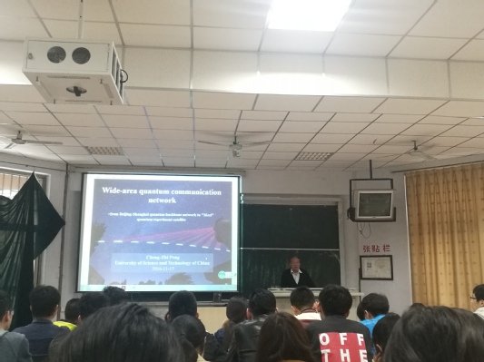 中国科学技术大学张永德教授主要就教育和治学两个方面展开。其中在教育方面,张教授提出:要进行“马拉松式教育”,注重培养学生对学习的兴趣。讲到这,张教授用人与人之间复杂的纠缠关系来解释量子纠缠的概念。张教授之中讲课方式就是在用兴趣讲课。在治学方面,张教授向我们传授了他的治学之道:驱使小道、讲究中道、追求大道。他还谈到了自己对人生价值的定义,他认为:人生的价值不在于知道多少,而在于奉献的多少。他还教导同学们“学问学问,既学又问”言语中想告诉同学们“勤学好问”的道理。在互动环节,专业教师和学生积极提问,其中张教授对量子计算的发展方向和量子理论的顶峰这两个问题进行了详细的解答,使参加报告的教师和学生对量子有了更深刻的理解。