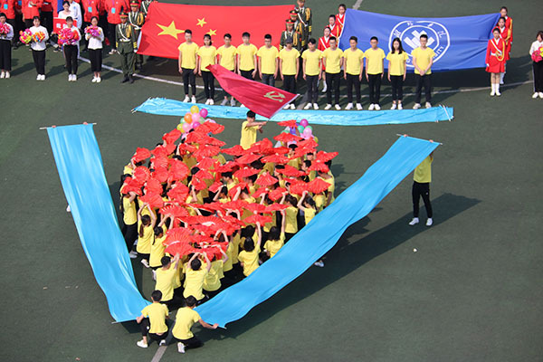 正所谓:“最是一年春好处,绝胜烟柳满皇都”,在这春色正当好的日子里,伴随着慷慨激昂的乐声,英姿飒爽的国旗护手正迎着五星红旗、党旗昂首挺胸地向主席台走来,红旗飘飘,庄严肃穆,为此次运动会的开始打响了第一发礼炮。紧接着第二发礼炮也应声而来,这是由21个二级学院组成的庞大队伍,每一个方队代表一个二级学院,他们数日前便精心彩排、努力训练,只为在今日展现出最佳的院系风釆。他们创意满满,朝气蓬勃。迈着整齐划一的步伐,正昂首阔步地向主席台走来的是物理与光电工程学院代表队,队员们手持蓝色彩带,如大海一般波涛汹涌,代表着物电学院海纳百川的胸襟和魄力,国旗和党旗迎风飘扬、交相辉映展现出物电学子们炽热的爱国之情,举旗手们一丝不苟、严阵以待,更加体现了物电人严谨务实的优良传统。随后,各个二级学院风采各异,都展现出了自己独特的风采。