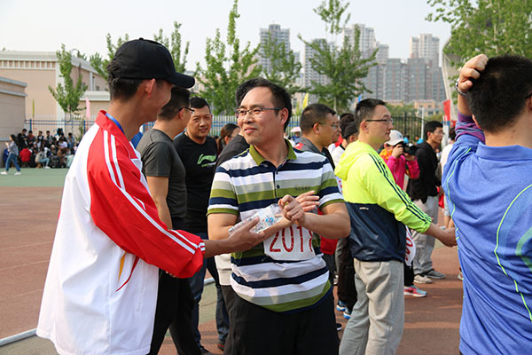 4月26日下午,由宿管部部长李新宇率领的组织服务组早已准备就绪。似火的骄阳之下,递毛巾,递热水,他们毫不含糊;按摩放松,加油打气,他们陪伴左右。烈日炎炎,他们的嘴唇早已爬上血口;暑气熏蒸,他们的T恤已被汗水湿透。然而他们却不曾有过半句怨言、片刻休息。赛场背后,随处可见他们默默无闻忙碌的身影。他们奔波在跑道之间,成为赛场上一道独特的风景线。