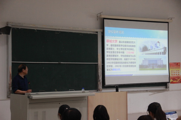 首先,葛老师通过PPT介绍了聊城大学的基本概况以及物理科学与信息工程学院的基本情况, 之后, 葛老师又为同学们详细的介绍了聊城大学的研究生招生专业 、研究生成果 、研究生招生政策等。