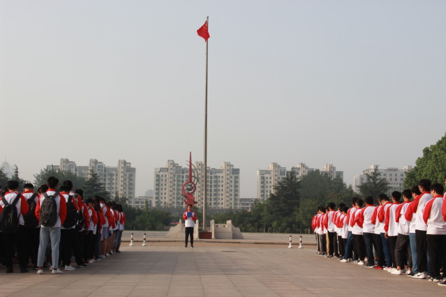 本次升旗仪式分为三项议程。第一项议程,升国旗奏国歌。伴随着清晨的朝阳和雄壮的国歌声,五星红旗徐徐升起,全体师生在朝阳的照耀下行着庄严的注目礼,此刻,师生们的目光里充满了对于不断向前腾飞的祖国的骄傲和自豪。第二项议程,由王老师做国旗下的讲话。王老师演讲的题目是“奋进新时代,凝心向未来”,王老师在讲话中提到:“我们正处在两个一百年奋斗目标的交汇期,未来我们将是建设社会主义现代化国家和社会主义现代化强国的主力军”,希望同学们在这个飞速发展的新时代,积极响应新时代的号召,在习近平新思想的指导下,明确奋斗目标及方向,努力向前。同时,王老师还鼓励同学们要坚定理想信念,志存高远,脚踏实地,勇做时代的弄潮儿。王老师国旗下的一番话语为同学们指明了奋斗的方向,也提醒同学们不要玩物丧志、贪图享乐,讲话获得了同学们如潮般的掌声。第三项议程,由学生代表李新宇做演讲。他以“无奋斗,不青春”为主题,特别指出在党的十九大报告中重点论述青年工作:“青年兴则国家兴,青年强则国家强”,以及电子科技大学材料与能源学院90后副院长刘明侦与哈佛大学凌晨四点半的实例。以此来告诫同学们:“青年是祖国未来发展的希望,作为青年一代,要有理想、有本领也要有担当。青春不是年华,而是心境,勇锐盖过怯弱,进取压倒苟安,是青春的本色。如果总是畏惧不前,青春便会迅速老去。阻挡青春老去的最好办法,便是做一个充满激情与能量的勇敢者。”只要肯努力,什么时候都不晚。