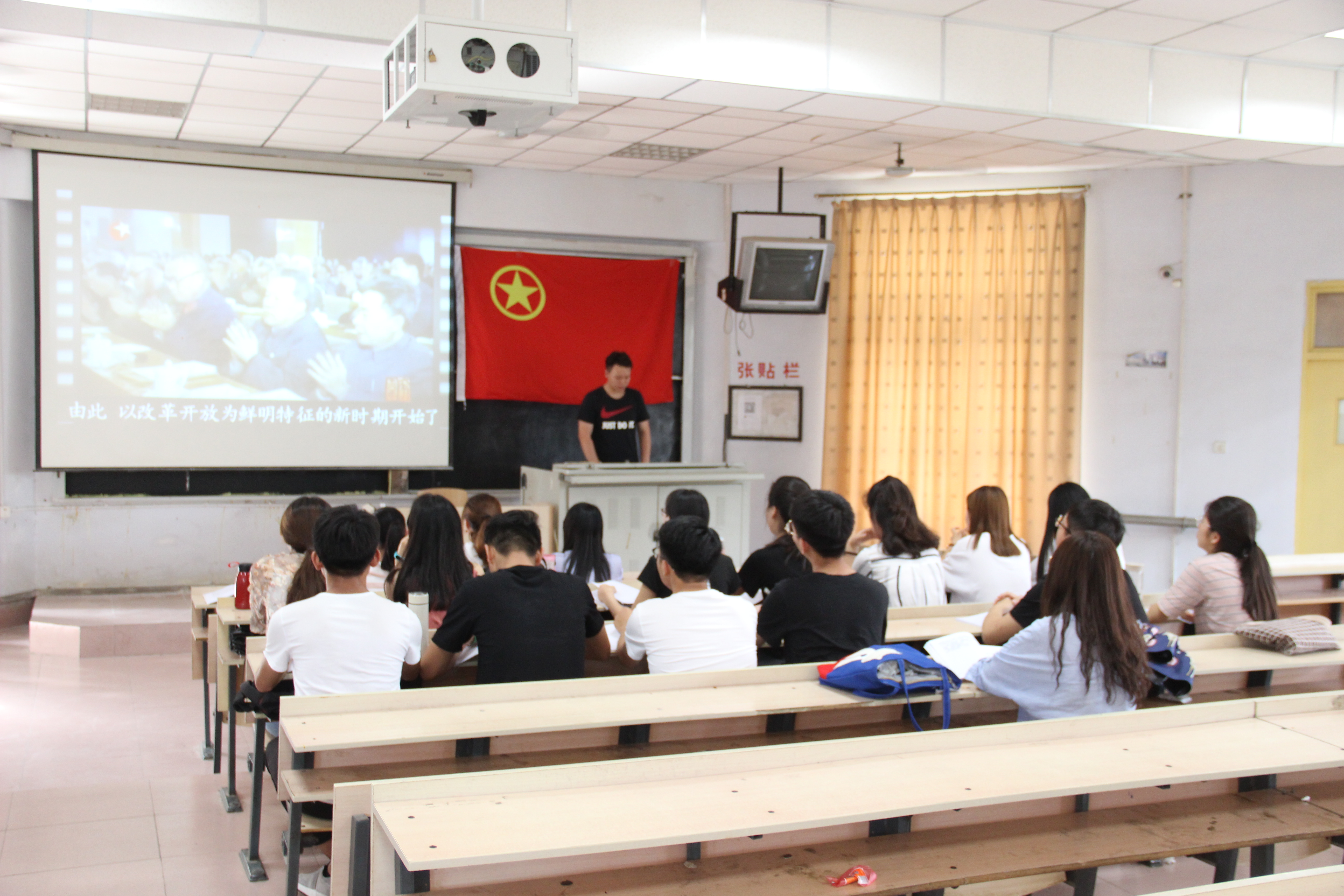 主题团日活动环节由“我与改革开放共成长”和“《习近平的七年知青岁月》读书会”两部分组成。同学们积极参与,踊跃发言,畅谈自己对改革开放的见解,描述自己的城市或村庄发生的巨变,感受祖国改革开放四十年来发展,由家到国,层层深入,用平实的语言讲述“我与改革开放共成长”的故事。《习近平的七年知青岁月》自发行以来,便在青年学生间广泛流传,同学们也从日常生活出发,结合习近平总书记的知青岁月,把激昂青春梦融入伟大中国梦的新时代征程,为“只有进行了激情奋斗的青春,只有进行了顽强拼搏的青春,只有为人民作出了奉献的青春,才会留下充实、温暖、持久、无悔的青春回忆”做最好的注脚。