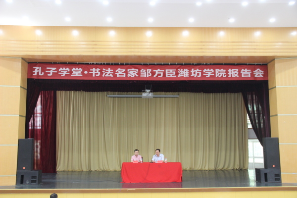 由共青团潍坊学院委员会主办,物理与光电工程学院承办的“孔子文化创意书法大赛”自5月29日在全校范围内开展以来,经过物电学院老师和学生会的努力,已经进入最后的颁奖阶段。2018年6月14日下午两点三十分,“孔子文化创意书法大赛”颁奖典礼暨书法名家进校园报告会在闻韶楼报告厅举行,报告会特邀请中国书法家协会会员、王羲之书法院执行院长邹方臣主讲,物电学院党总支副书记贺志波、团总支副书记王振国、16级辅导员金波昌出席了本次报告会。